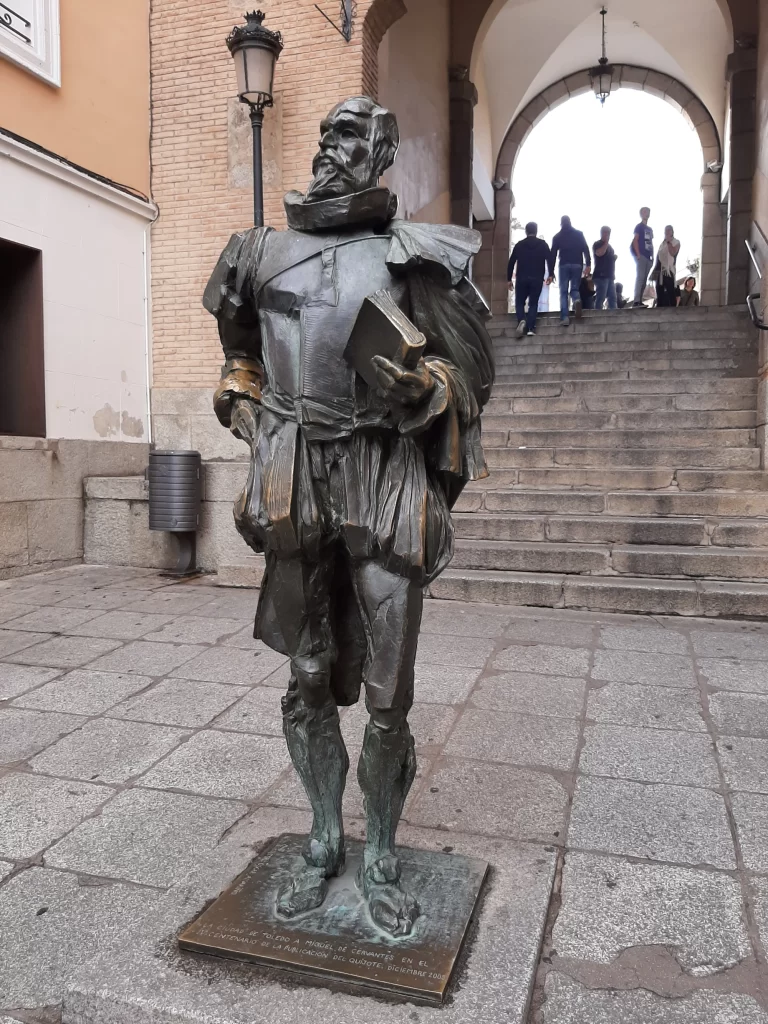 Il centro storico di Toledo (patrimonio dell’umanità protetto dell’Unesco) è un grazioso labirinto di ripide stradine, ricco di storia. Toledo è considerata la città delle tre religioni, dal momento che la sua storia si intreccia con quella delle dominazioni che vi hanno regnato. Per gli amanti della letteratura, la città é legata anche a Don Chisciotte e Sanzo Panza, dato che le loro avventure si svolgono proprio nel territorio de La Mancia. A ricordarlo è anche la statua di Miguel de Cervantes eretta nel 2005 per celebrare i 400 anni dell’uscita del suo romanzo più famoso.